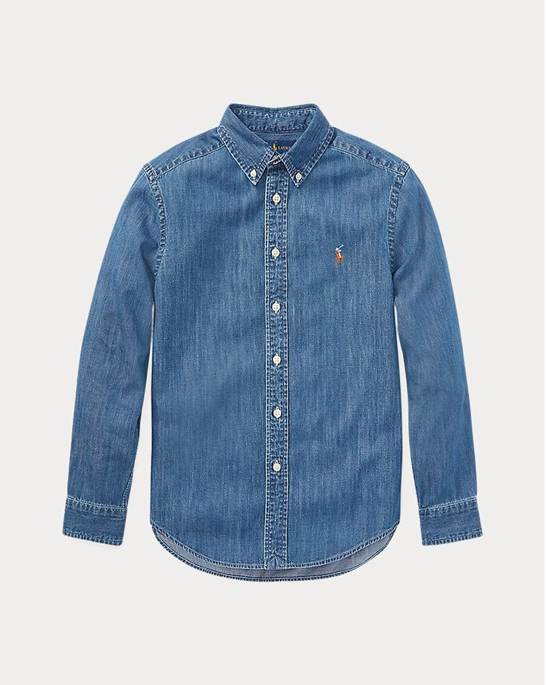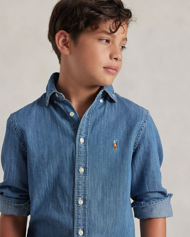 Polo Ralph Lauren Boys’ Denim Shirt with a Multicolored Signature Embroidered Pony on the Left Chest