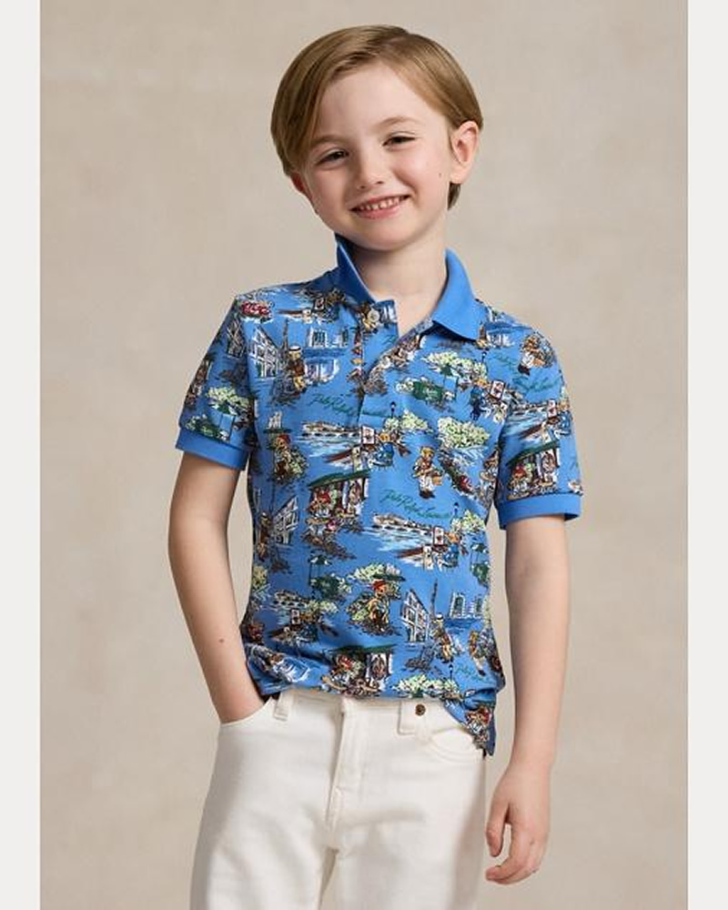 Polo Ralph Lauren Men Polo Bear Paris Blue Mesh Polo Shirt Classic Fit