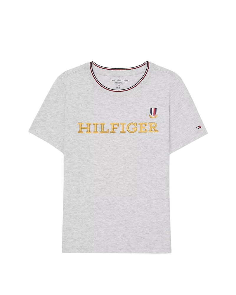 Tommy Hilfiger Embroidered Hilfiger Logo T-Shirt – Mid Grey Heather