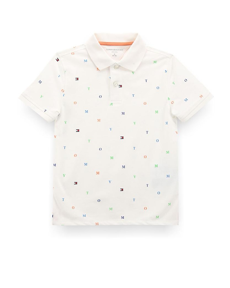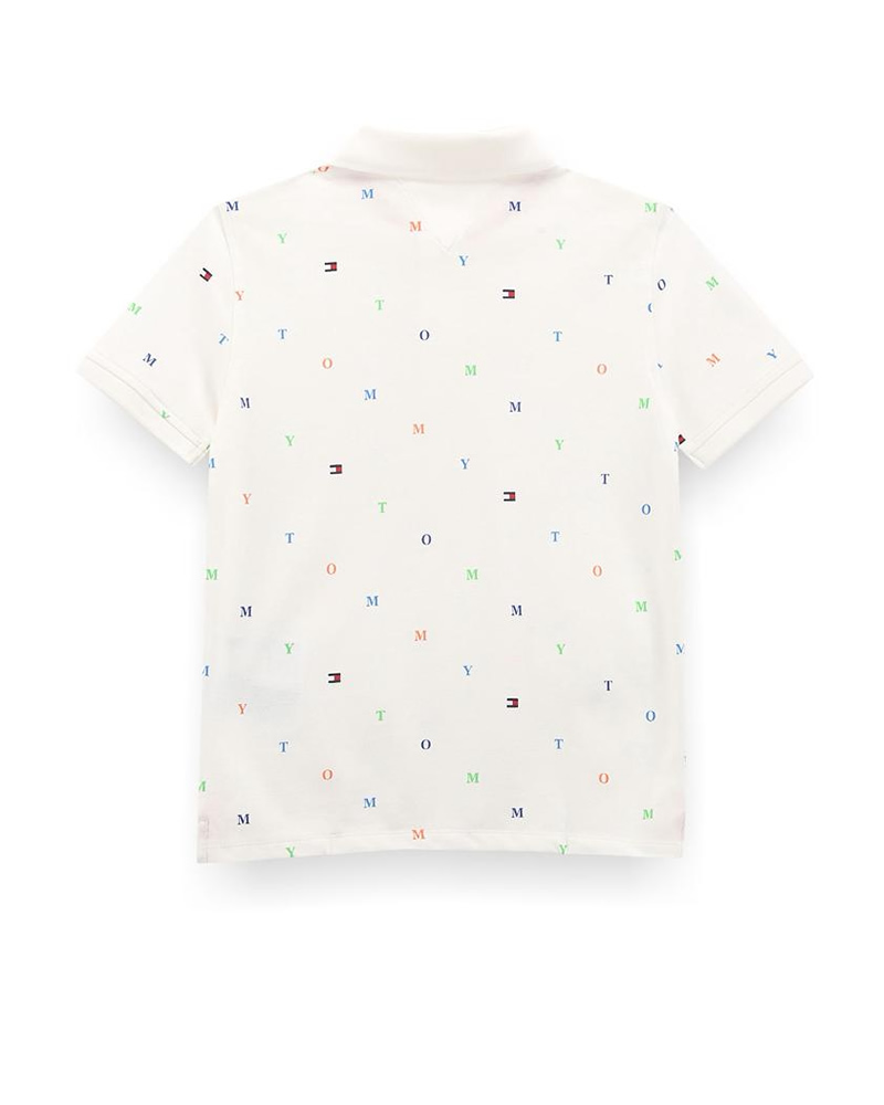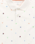Tommy Hilfiger Kids Boys Monogram Print Critter Polo Shirt in White with Multicolored Embroidered Flags